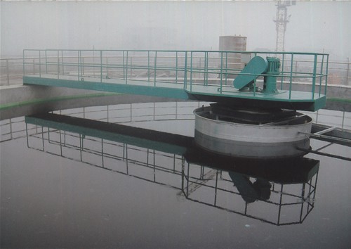 辐流式沉淀池刮泥机排出的污水从池中心的进水管通过尾水管扩散,然后均匀径向向外流出。悬浮污泥沉淀后沉积在池底。上清液通过溢流堰板从出口槽排出。辐流式沉淀池刮泥机从池的外围刮至中心集泥池,利用池内的水压通过排泥管从池中排出。